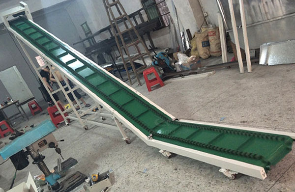 大傾角皮帶輸送機(jī)在鍋爐輸渣的應(yīng)用:輸送機(jī)應(yīng)用范圍非常廣,大傾角皮帶輸送機(jī)有其獨(dú)特的輸送特點(diǎn),下面就在鍋爐輸送爐渣對(duì)其介紹:設(shè)備上裝有防塵蓋板形成封閉結(jié)構(gòu),將來(lái)自出渣皮帶的滬渣以極大的傾角提升到設(shè)計(jì)高度,送入儲(chǔ)渣罐內(nèi)儲(chǔ)存,儲(chǔ)渣罐通過(guò)卸料閥和防塵布質(zhì)落料管定時(shí)卸放到運(yùn)輸車上運(yùn)走。采用全封閉式結(jié)構(gòu)輸送滬渣時(shí)不導(dǎo)致飛灰對(duì)環(huán)境的影響。其整個(gè)機(jī)身均為鋼板整體折彎的腹板式結(jié)構(gòu)。采用螺栓連接替代了焊接;機(jī)架墻板全部采用鋼板整體析彎制成,保證了大傾角皮帶輸送機(jī)整體的剛性,且不需要銜架和輔助支撐架,同時(shí)作為封閉式結(jié)構(gòu)的一部分,外形簡(jiǎn)潔美觀大方;左右墻板上的裝置孔采用配對(duì)組合鉆孔加工工藝以保證裝置精度;支撐方鋼采用焊后銑削和組合鉆孔加工,消除焊接變形,確保裝置精度,并使托輥間達(dá)到佳平行度,保證皮帶不跑偏,提高皮帶使用壽命;機(jī)架之間靠連接板通過(guò)螺栓連接,不只防止了焊接變形,而且現(xiàn)場(chǎng)裝置迅速,對(duì)裝置工人技術(shù)要求不高。此外,由于機(jī)架墻板為鋼板折彎件,很容易加裝防塵底板和防塵蓋板形成全封閉結(jié)構(gòu),進(jìn)行環(huán)保生產(chǎn)。