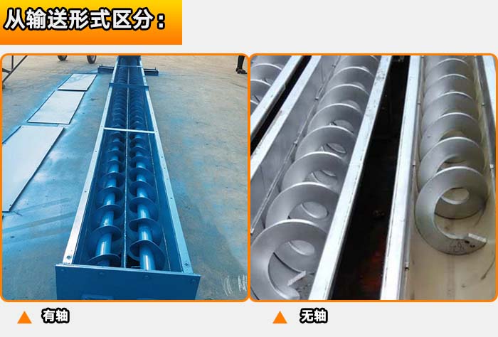 螺旋輸送機從輸送形式上可分為:有軸和無軸螺旋之分。