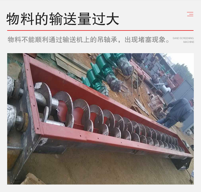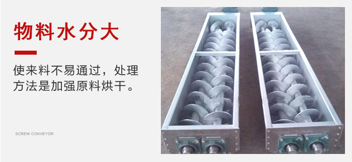 1、物料水分大,集結(jié)在螺旋吊軸承上并逐漸加厚,使來料不易通過,處理方法是加強原料烘干。