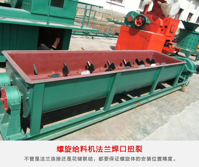 1、由于異常扭矩的產(chǎn)生,聯(lián)結(jié)法蘭焊接失效,處理方法是保證設(shè)備安裝精度,不管是法蘭連接還是花鍵聯(lián)結(jié),都要保證螺旋體的安裝位置精度,安裝后應(yīng)接線調(diào)試確定螺旋轉(zhuǎn)向,聲音有無異常。試運轉(zhuǎn)后檢查電機、減速機、軸承溫升,一切正常后,開動手動螺旋料倉閘門逐漸加料,經(jīng)過調(diào)試后,使螺旋運轉(zhuǎn)平穩(wěn)。