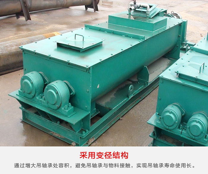 雙軸螺旋輸送機采用變徑結構,通過增大吊軸承處容積,避免吊軸承與物料接觸,實現吊軸承壽命可達到兩年以上。