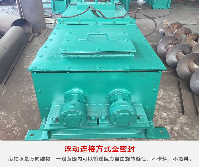 各傳動部位都是采用浮動連接方式,吊軸承是萬向結構,使吊軸承、螺旋體和尾部總能形成一個整體的旋浮體,在一定范圍內可以輸送阻力自由旋轉避讓,不卡料,不堵料。