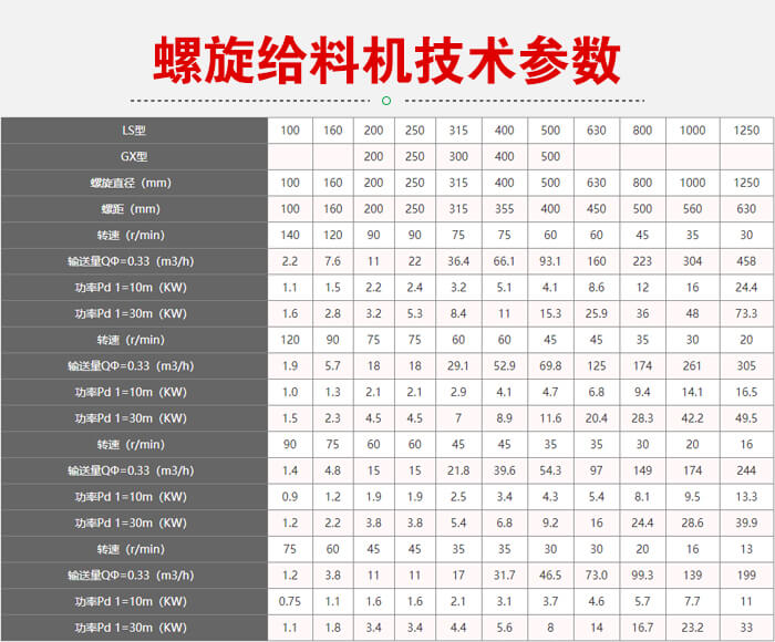 輸送量大小將直接決定設備型號大小的選擇,用戶所需產量越大,選擇的螺旋給料機型號也就越大,用戶需要結合自身對產量的需求來選擇合適的型號。
