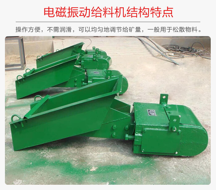 電磁振動給料機結(jié)構(gòu)簡單,操作方便,不需潤滑,耗電量小;可以均勻地調(diào)節(jié)給礦量;因此已得到廣泛應(yīng)用。一般用于松散物料。
