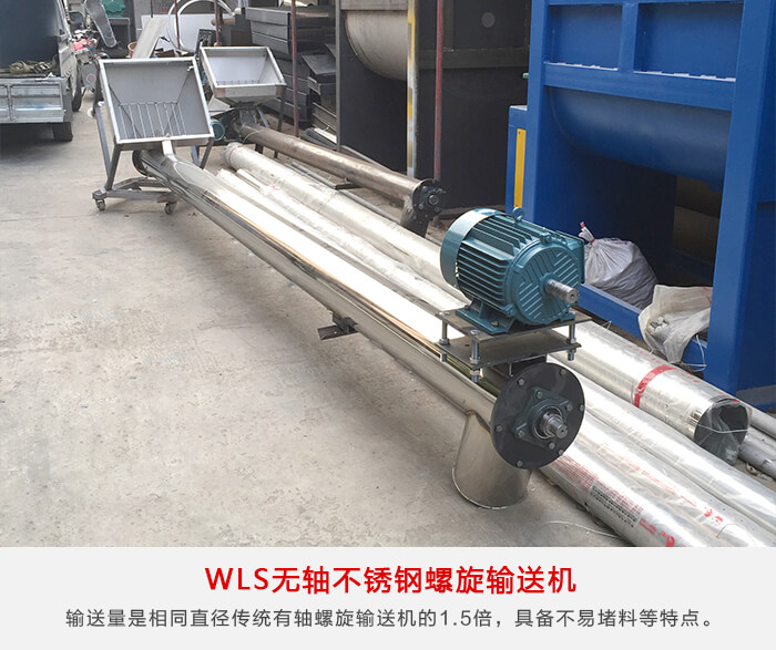 采用無軸設(shè)計(jì),主要用來輸送易于纏繞、粘度高的物料,輸送長(zhǎng)度可以達(dá)到60m,輸送量是相同直徑傳統(tǒng)有軸螺旋輸送機(jī)的1.5倍,具備不易堵料、性好、輸送高效、能耗低的特點(diǎn)。