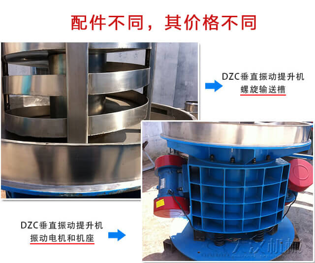 不同型號的垂直振動提升機,其輸送槽直徑是不同的,所以這就使得單位時間內不同型號的垂直振動提升機輸送量是不同的,所以價格也勢必會有所影響。大漢垂直振動提升機型號有DZC300、DZC500、DZC550、DZC600、DZC800、DZC850、DZC900等多種型號,用戶選擇的型號不同,價格也會略微有所變化。