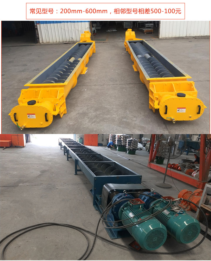 雙螺旋輸送機常見有200mm-600mm等6種型號規格;型號越大輸送量越高,可達458立方米/小時,用戶可根據實際情況選擇適合的型號,此外也可支持特殊型號定制。