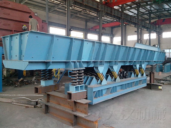 (1)振動輸送機(jī)的底架與槽體必須安裝平直,建議其平直度在10米長度不大于5-8毫米,底架與槽體過大的撓曲會引起較大的安裝應(yīng)力,進(jìn)而會引起這些機(jī)件的早期損壞。
