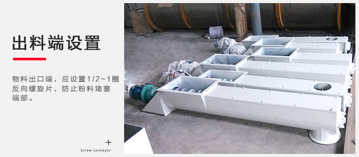 4)LS、GX型螺旋輸送機物料出口端,應設置1/2~1圈反向螺旋片,防止粉料堵塞端部。