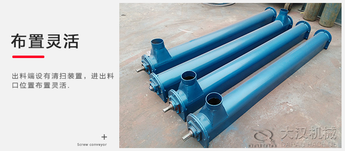 大漢螺旋輸送機(jī)在輸送形式上分為有軸螺旋輸送機(jī)和無(wú)軸螺旋輸送機(jī)兩種,在外型上分為管式螺旋輸送機(jī)和U型螺旋輸送機(jī)。