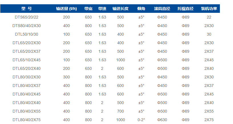 固定帶式輸送機由于輸送量大、結構簡單、維護方便、成本低、通用性強等優(yōu)點,而被廣泛地應用在冶金、礦山、煤炭、港口、交通、水電、化工等部門進行裝車、裝船、轉載或堆積各種常溫狀態(tài)的松散密度為500~2500kg/m3各種散狀物料或成件物品。